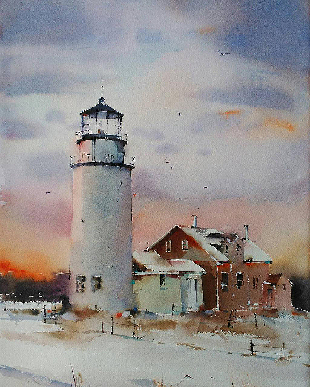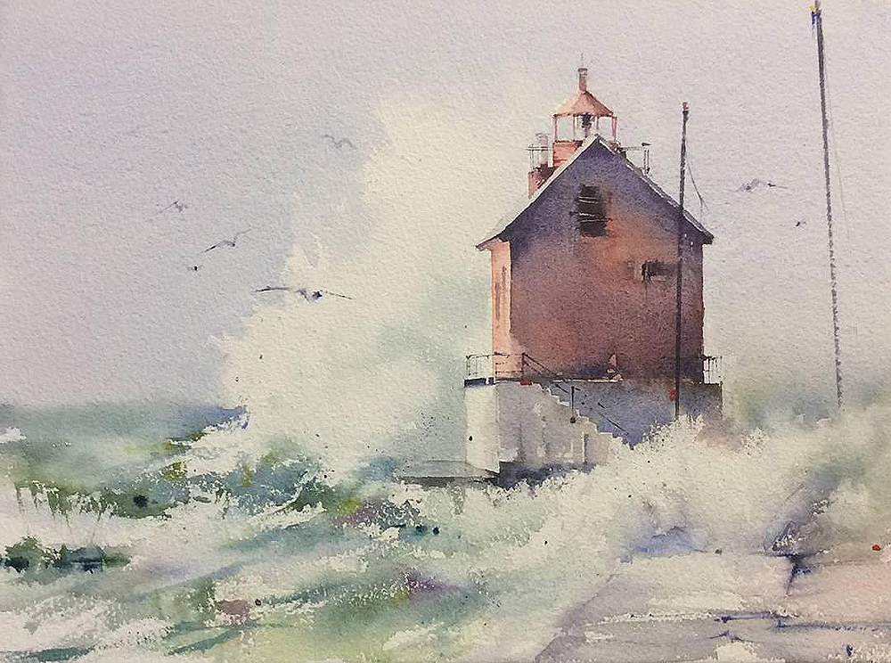 یکی از موضوعات مورد علاقه من دریا است. همچنین دوست دارم از فانوس دریایی نقاشی بکشم که نور آن با قدرت از دوردیده می شود.
