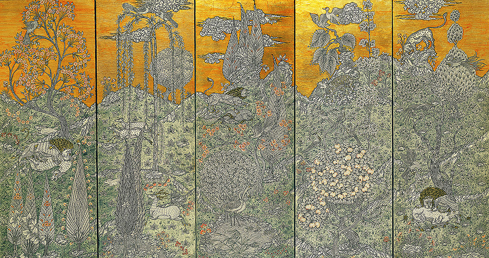 علی اکبر صادقی در نقاشی های خاطره انگیز خود سنت های غنی هنر فارسی را با شیوه سورئال نقاشی ترکیب می کند و با استفاده خارق العاده از رنگ و فرم آثاری شگفت انگیز و سرگیجه آور به وجود می آورد.