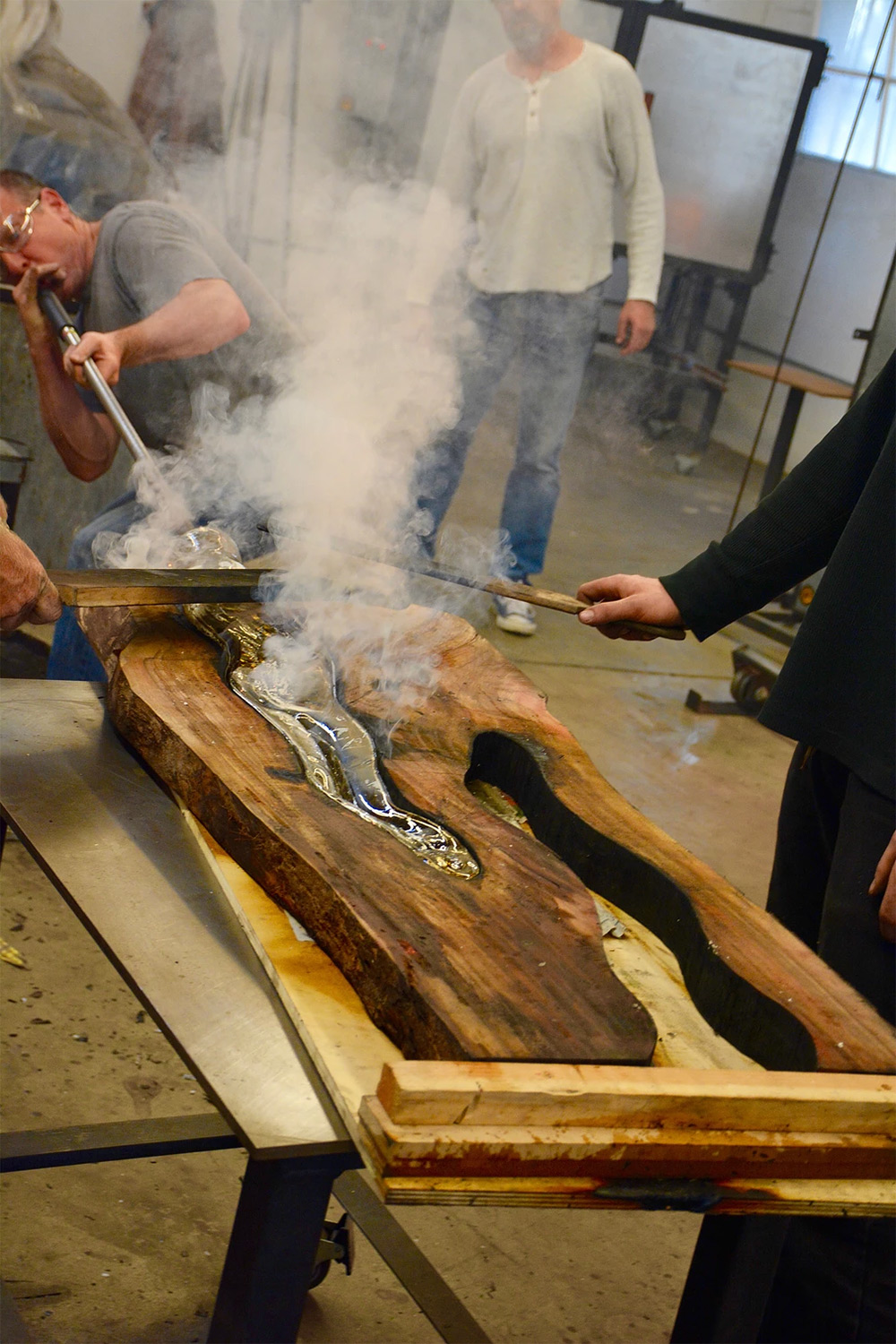 Glass Vases Formed Within Wooden Enclosures by Scott Slagerman Studio