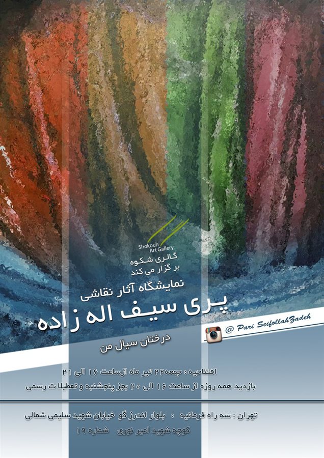 نمایشگاه «درختان سیال من» تا روز چهارشنبه  از ساعت ۱۶ تا ۲۰ برپا خواهد بود.