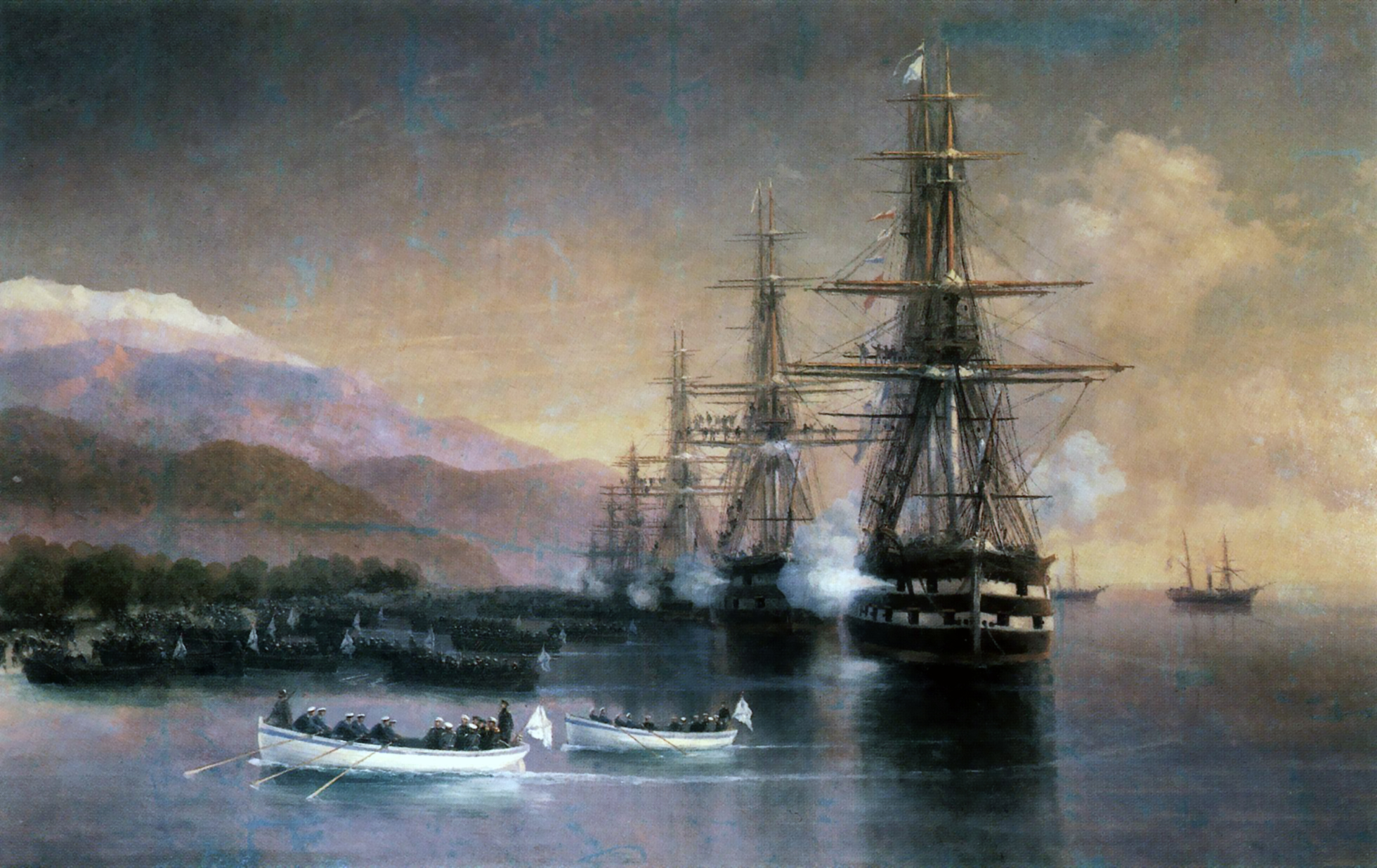 ایوان آیوازوفسکی سرزمین مادریاش را بیش از حد دوست دارد. او در هر کجای نقاشی، پیروزی شکوهمندانه ناوگان روسیه را بر دشمنش تصویر کرده است. در مانند چنین نقاشی با عنوان «ورود به خشکی در سوباشی»، و نقاشیهای دیگر شهادت میدهند به مدافعان شکوهمند روسی و قدرت شکست ناپذیر ملوانان نیروی دریایی روسیه که آماده هستند به جنگیدن برای سرزمین مادریشان تا آخرین نبرد.