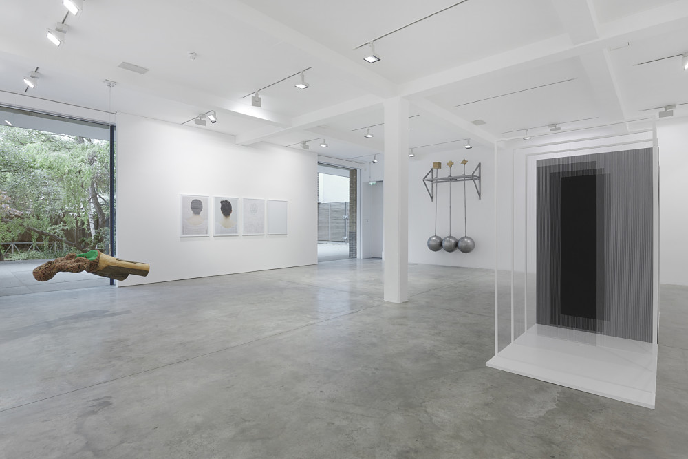 آثار هادی طباطبایی، ترکیبی از طراحی، نقاشی و مجسمهسازی، اغلب در شبکهها و ماژولها با یک پالت رنگی محدود و مجموعهای از متغیرهای تعریف شده است. طباطبایی در اثری به نام "فضاهای انتقالی" 2017(In Transitional Spaces) که یک چیدمان بزرگ از چندین قطعه عمودی است، تکانهای نامحسوسی را با استفاده از خط، نور و سایه در سطوح ظاهری ایجاد کرده است.
