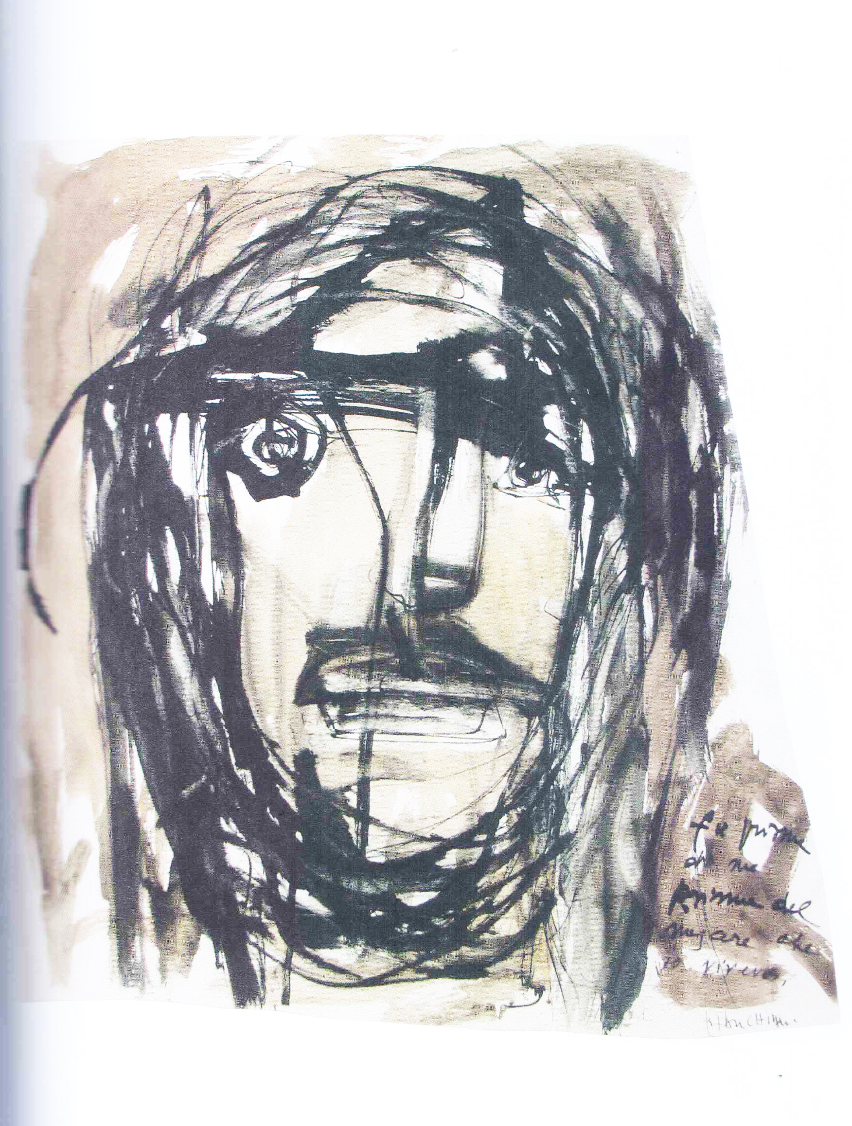 وینچزو بیاکینی/ پرتره ازمجموعه عرب ها/ مرکب/ 54 در 51 سانتی متر/ دهه 40شمسی/ صفحه 106 کتاب