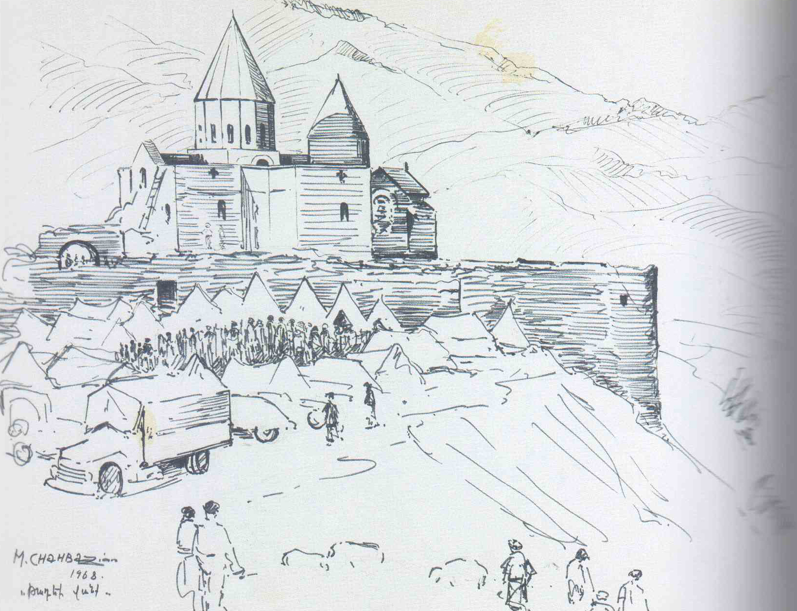 میکاییل شهبازیان/ قره کلیسا- ارومیه/ ماژیک و مداد/ 33 در 43 سانتی متر/1968 میلادی/ صفحه 107 کتاب